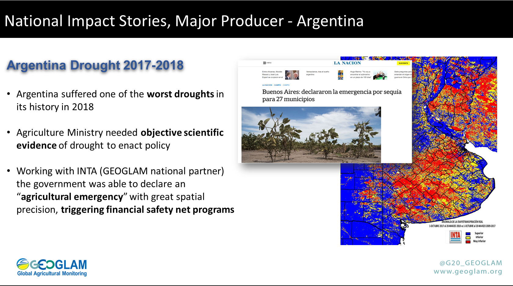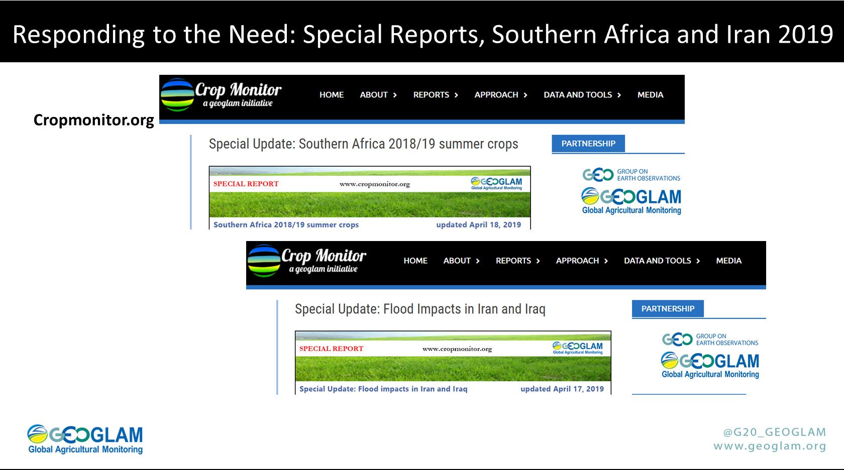 To increase market transparency and improve food security by producing and disseminating relevant, timely, and actionable information on agricultural conditions and outlooks of production at national, regional, and global scales. We achieve this by strengthening the international community’s capacity to utilize coordinated, comprehensive, and sustained Earth observations.