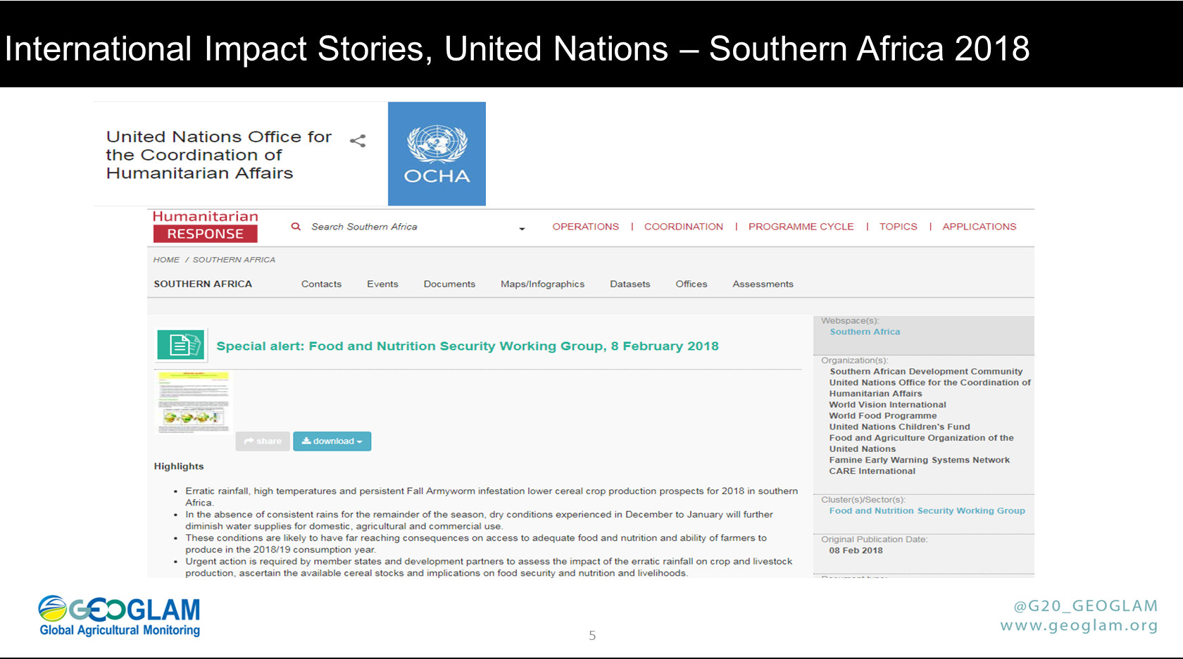 GEOGLAM CROP MONITOR SPECIAL ALERTS – SOUTHERN AFRICA EL NIñO INDUCED DROUGHT