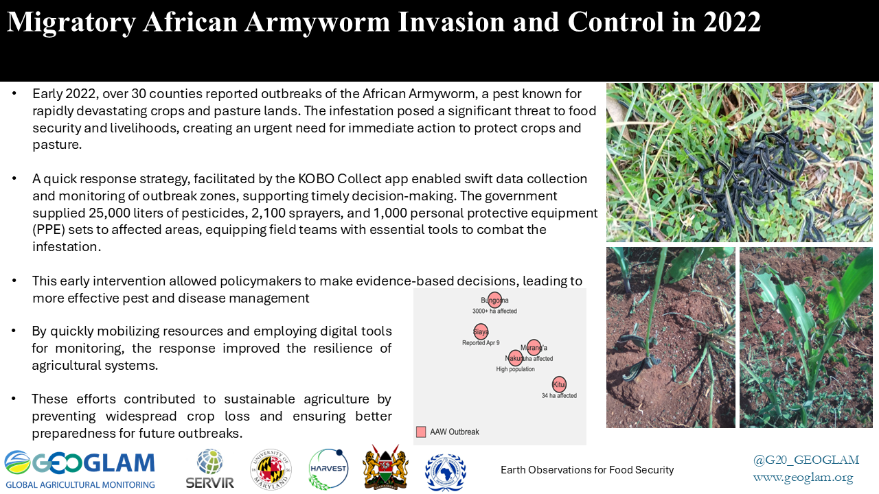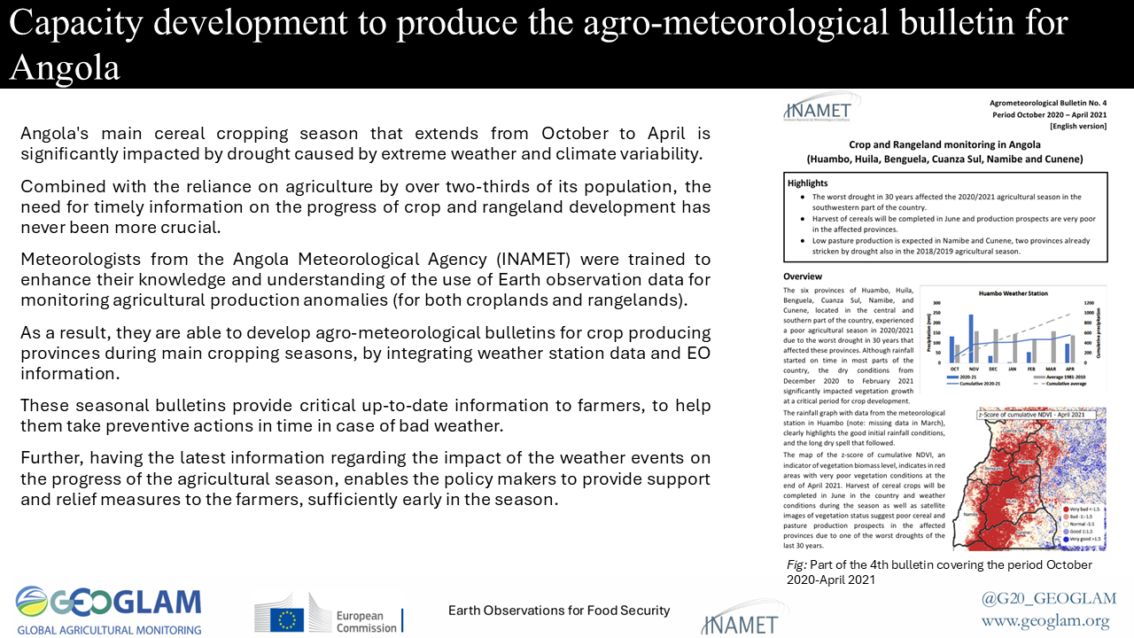 Strengthening individual, organisational, and institutional capacities to use Earth observation (EO) data for agricultural monitoring and food security decision-making.